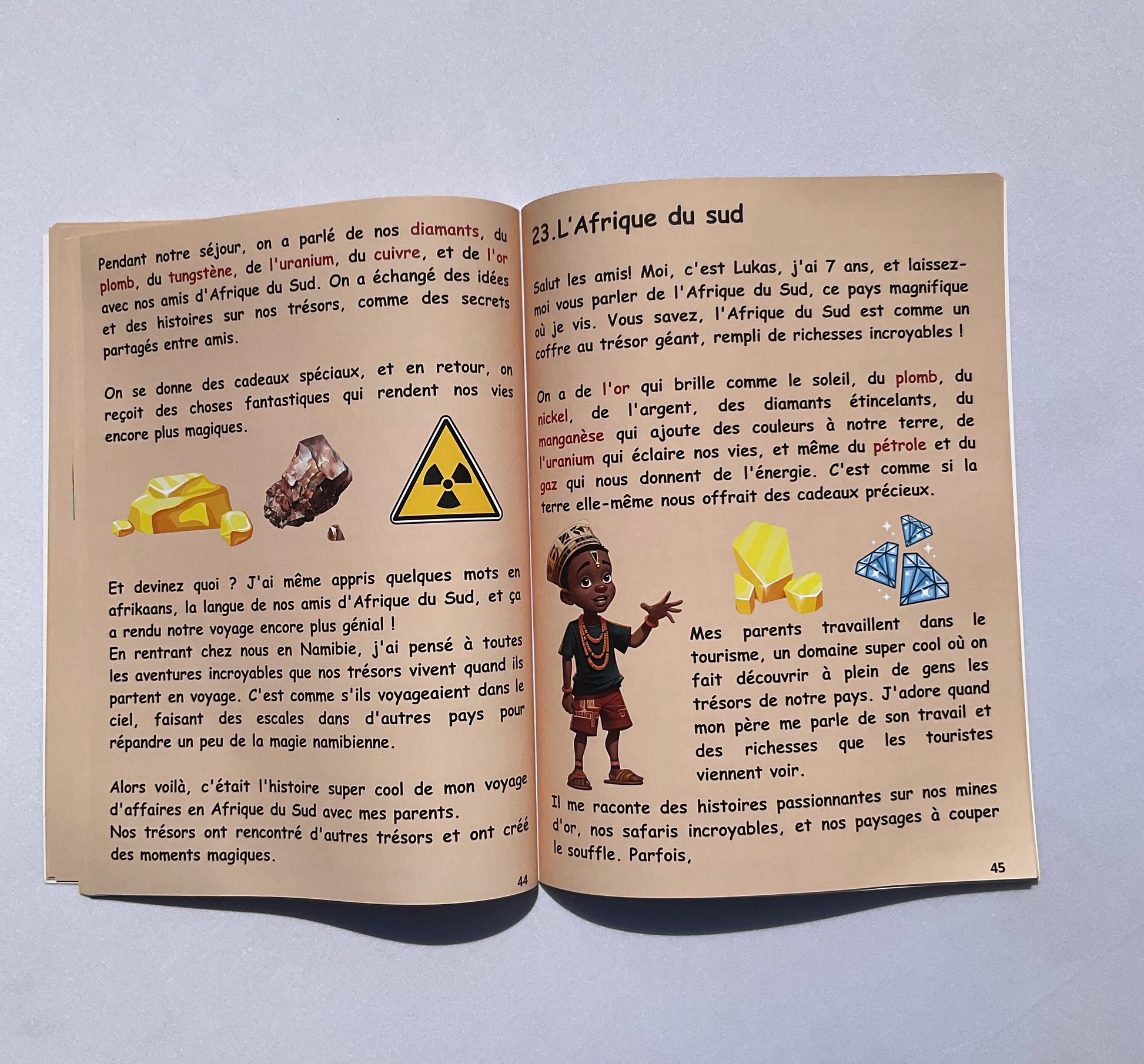 📖 Un livre pas comme les autres : Guidé par des enfants passionnés, explorez les splendeurs uniques du continent, de l’émeraude zambienne à l’or ghanéen, en passant par le pétrole nigérian et les vastes salines de Mauritanie.